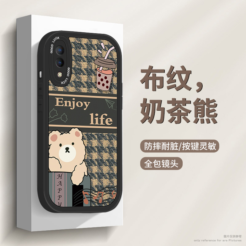 适用vivoy93s手机壳y70s布纹y76s情侣y73s硅胶y52s男女款y51s防摔y32小众y31s可爱y30g奶茶小熊新款潮保护套