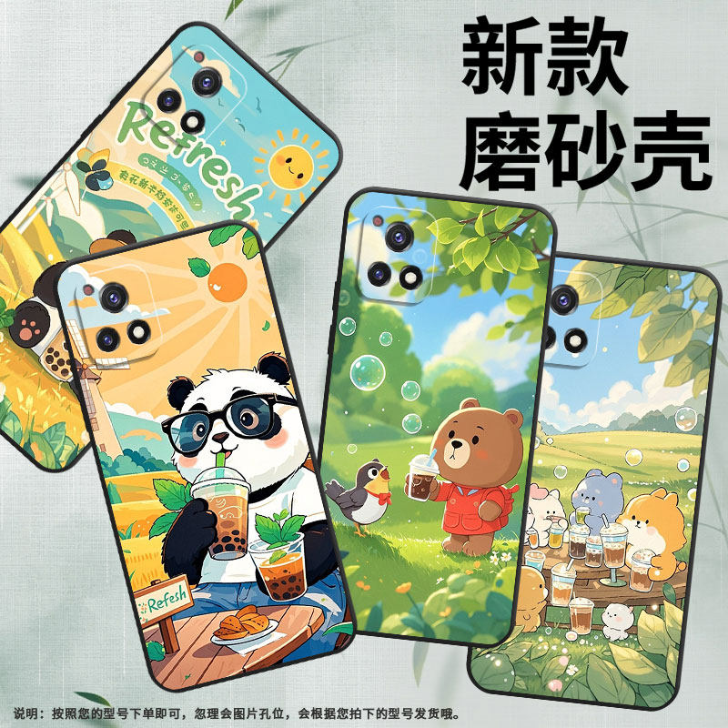 适用vivoy50手机壳y56/y52/y51情侣y58男女款y54s轻薄y53s新款t2国潮y55耐脏V1965A创意简约戴眼镜的熊猫时尚