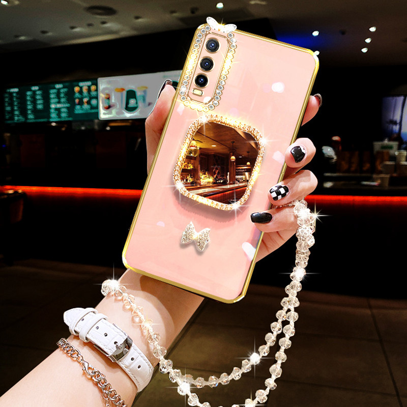 vivoY30手机壳V2034A时尚高档Y70s女款网红镶钻化妆镜y51s全包镜头丫30硅胶保护套vivi潮流viv0y30挂绳V2002A