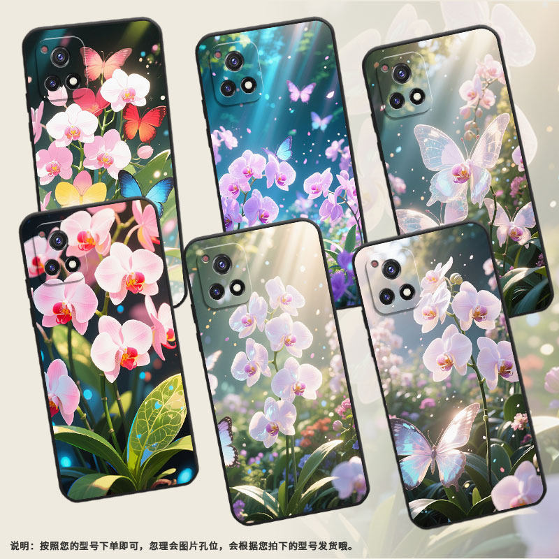 适用vivoy50手机壳y51/y56/y58国潮y53s男女款t2耐脏y54s商务y55全包边y52成丛蝴蝶兰V1965A耐磨粉白蝴蝶兰