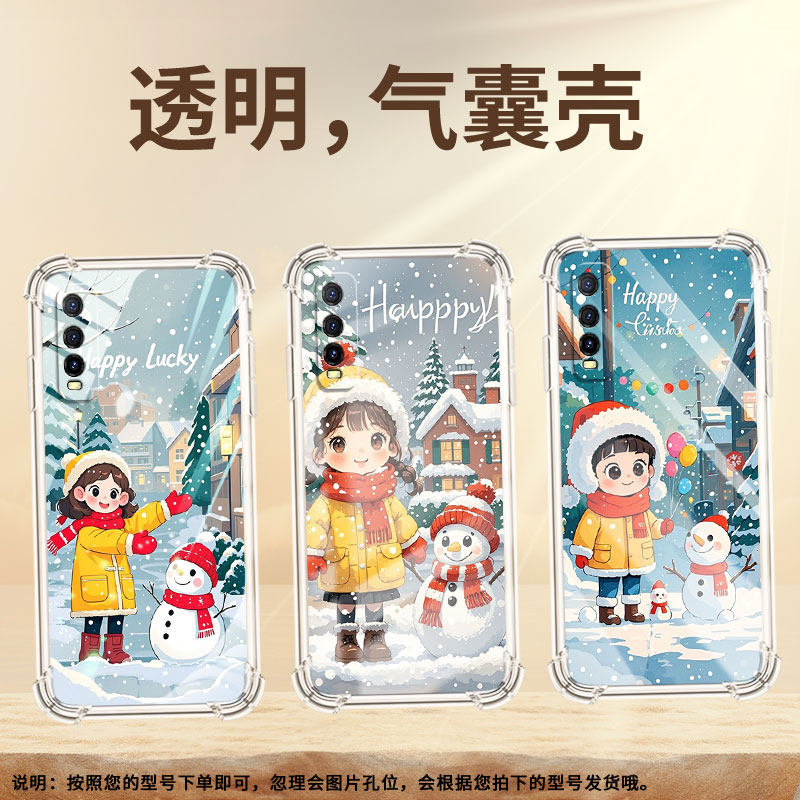 适用vivoY51手机壳vivoY55s高级感vivoY52气囊壳viv0Y50女孩与雪人硅胶viviY53t中国风潮流男女款保护套
