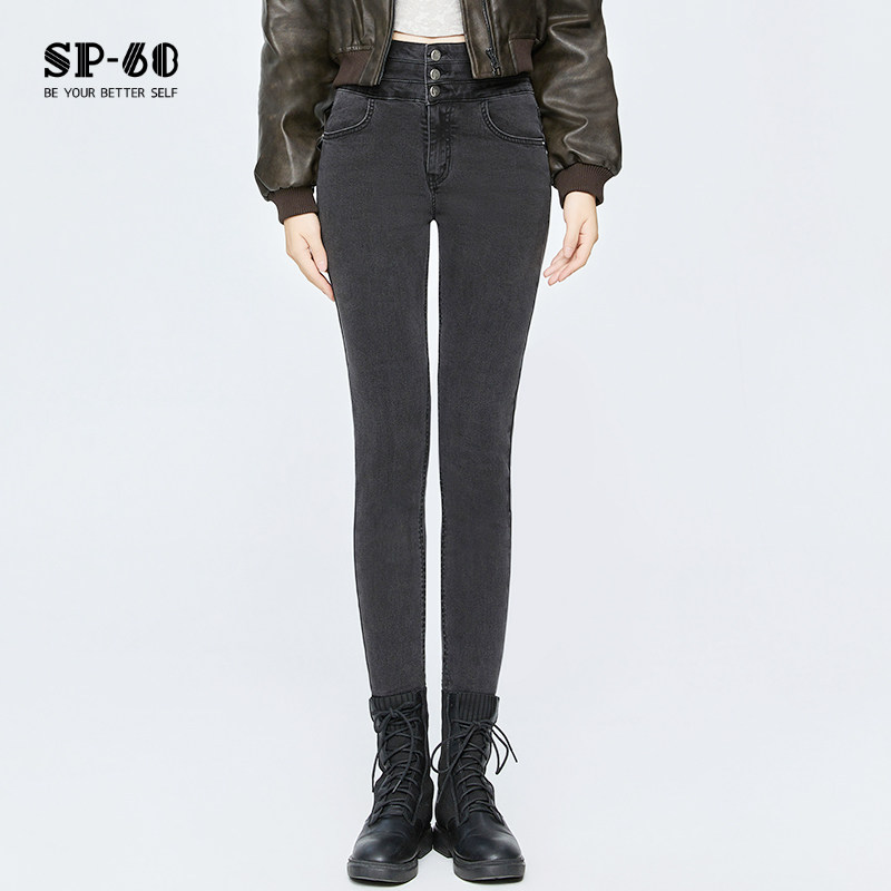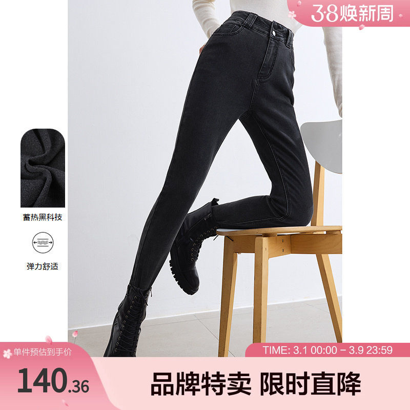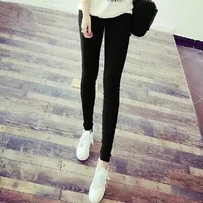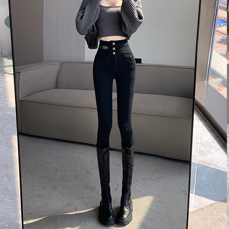 - 黑色小脚裤加绒女外穿