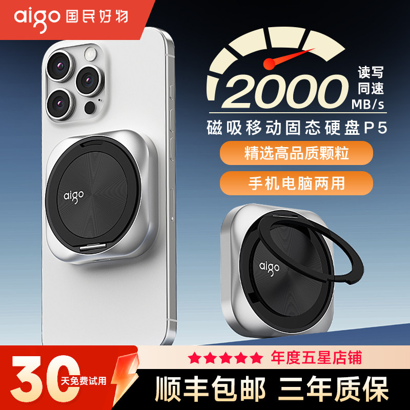 爱国者P5移动固态硬盘1t高速苹果手机外接SSD磁吸硬盘电脑两用2TB