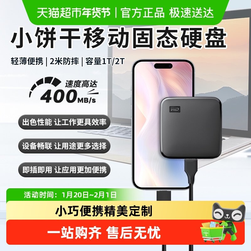 WD西部数据移动硬盘2t正品存储电脑5t手机外置1t大容量机械硬盘