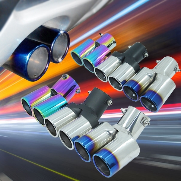汽车尾喉排气管改装通用款装饰配件不锈钢消音器双管尾气罩一出二