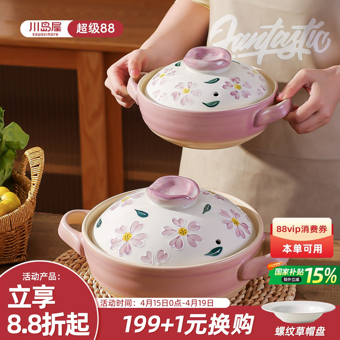 川岛屋日式砂锅煲家用耐高温干烧不裂燃气灶专用煲汤锅煲仔饭沙锅