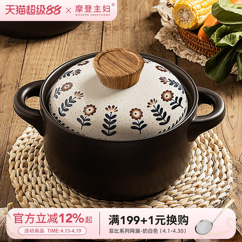 摩登主妇砂锅煲炖锅家用耐高温干烧不裂煲汤锅燃气灶专用陶瓷沙锅