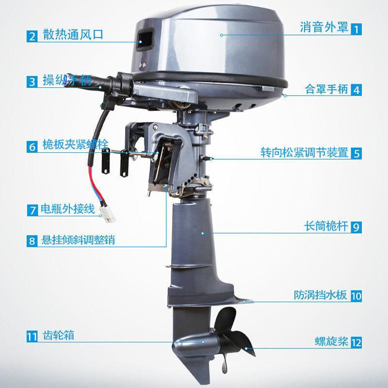 橡皮船推进器电动二四冲程 船 冲锋舟马达发动机螺旋桨挂浆船外机