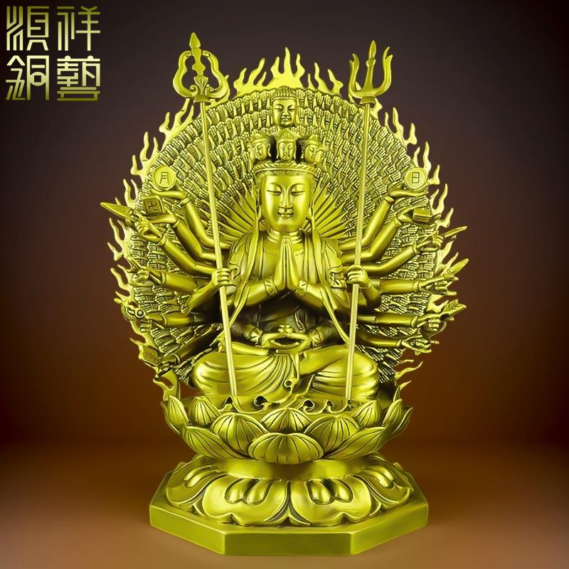 千手观音佛像摆件家用纯铜千手千眼观音菩萨守护佛客厅玄关摆设品