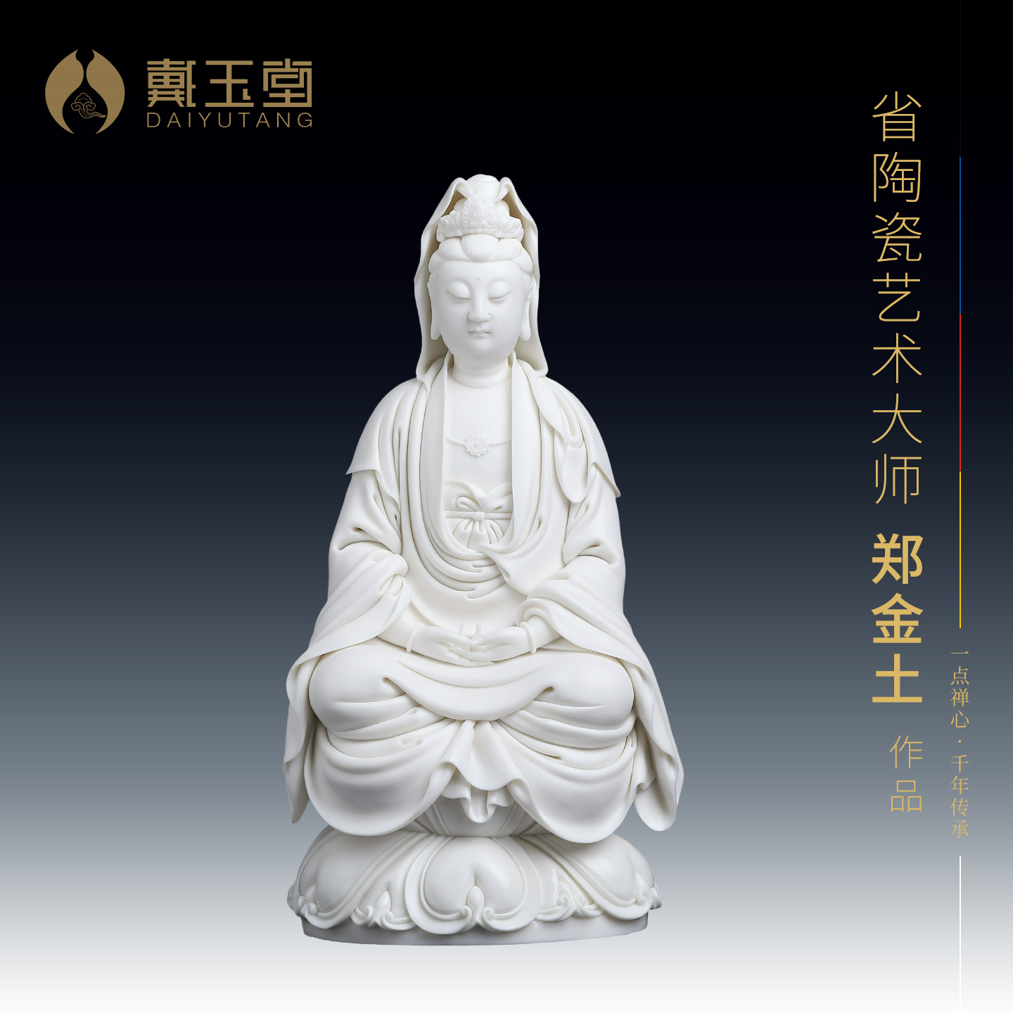戴玉堂陶瓷古莲观音佛像摆件大师郑金土客厅家用供奉艺术收藏送礼