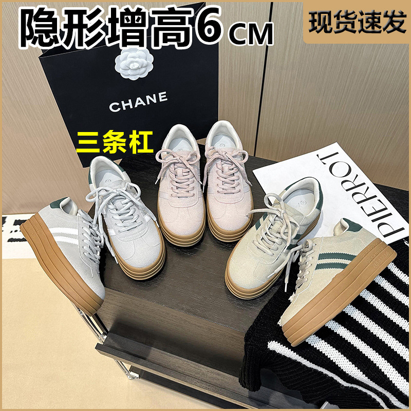 踩屎感厚底德训鞋女春秋百搭三条杠休闲板鞋显脚小运动鞋D3302