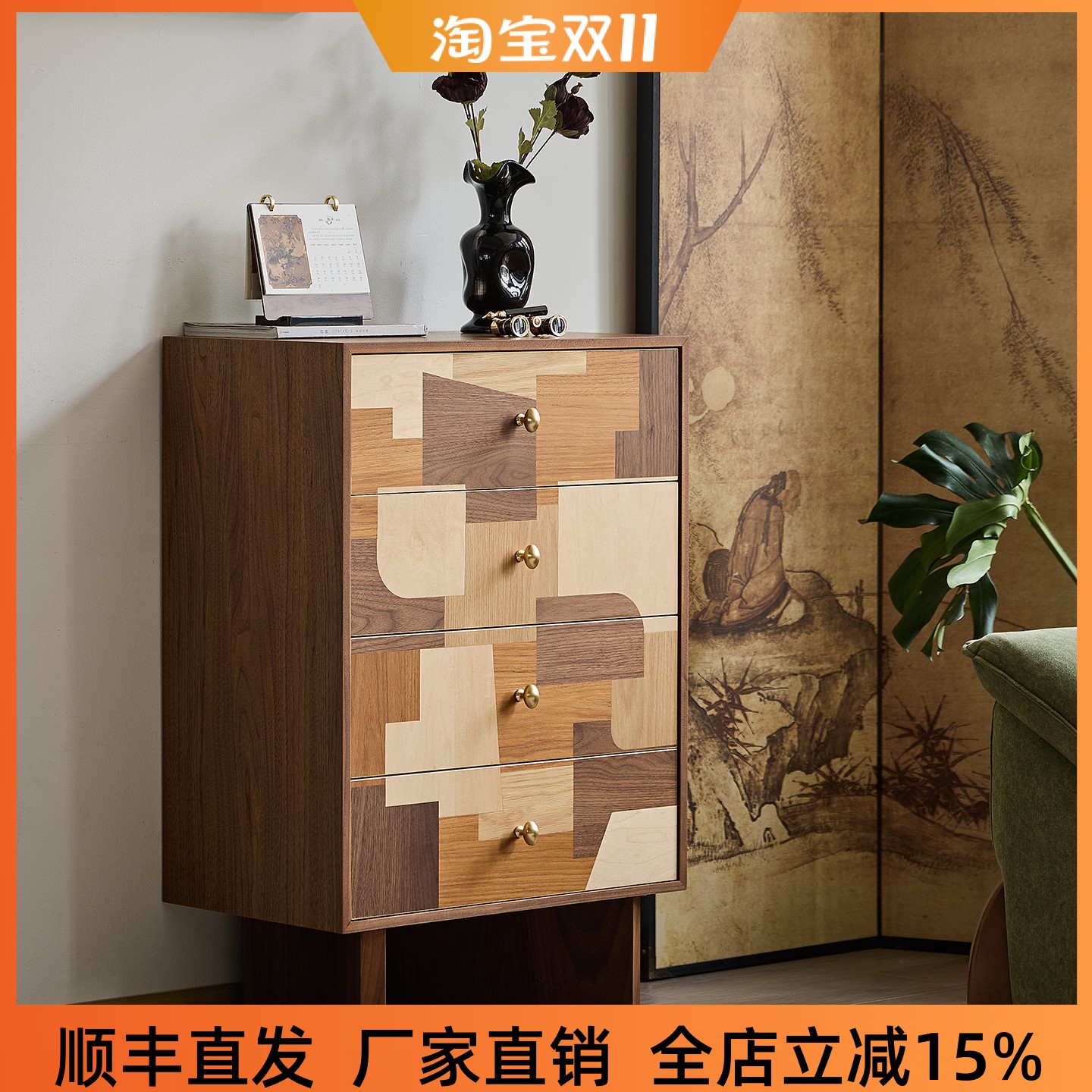 实木斗柜 中古风核桃木四六斗柜客厅卧室靠墙储物收纳轻奢玄关柜