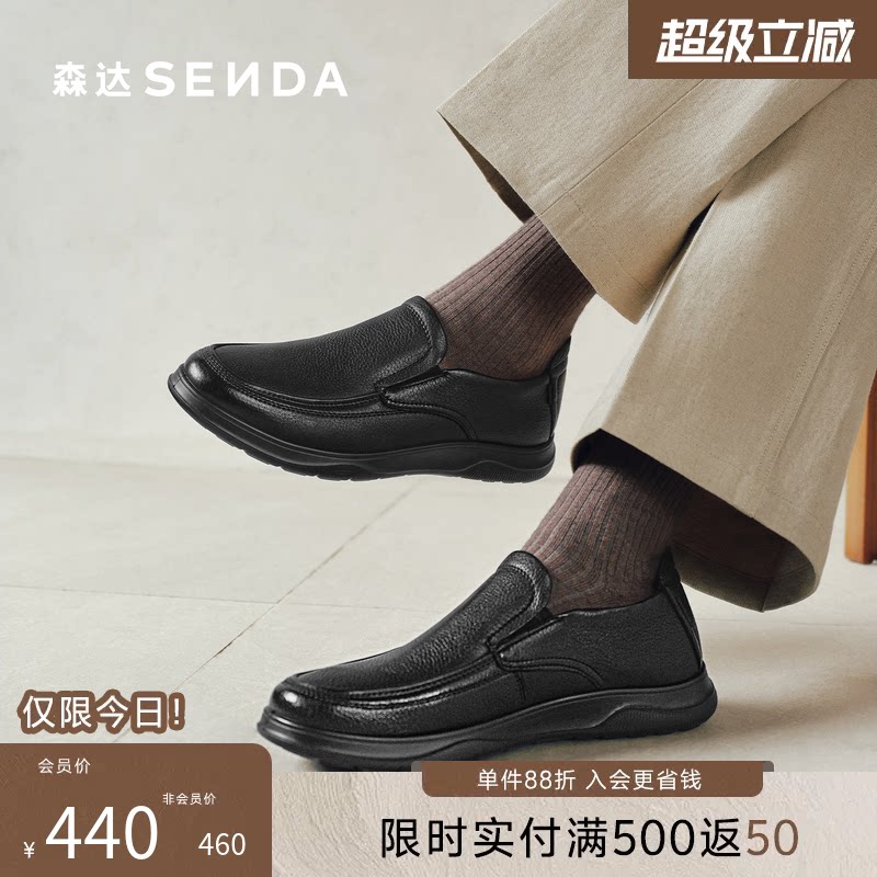 森达休闲皮鞋男2026春新商场同款一脚蹬运动舒软面牛皮鞋2BQ01AM6
