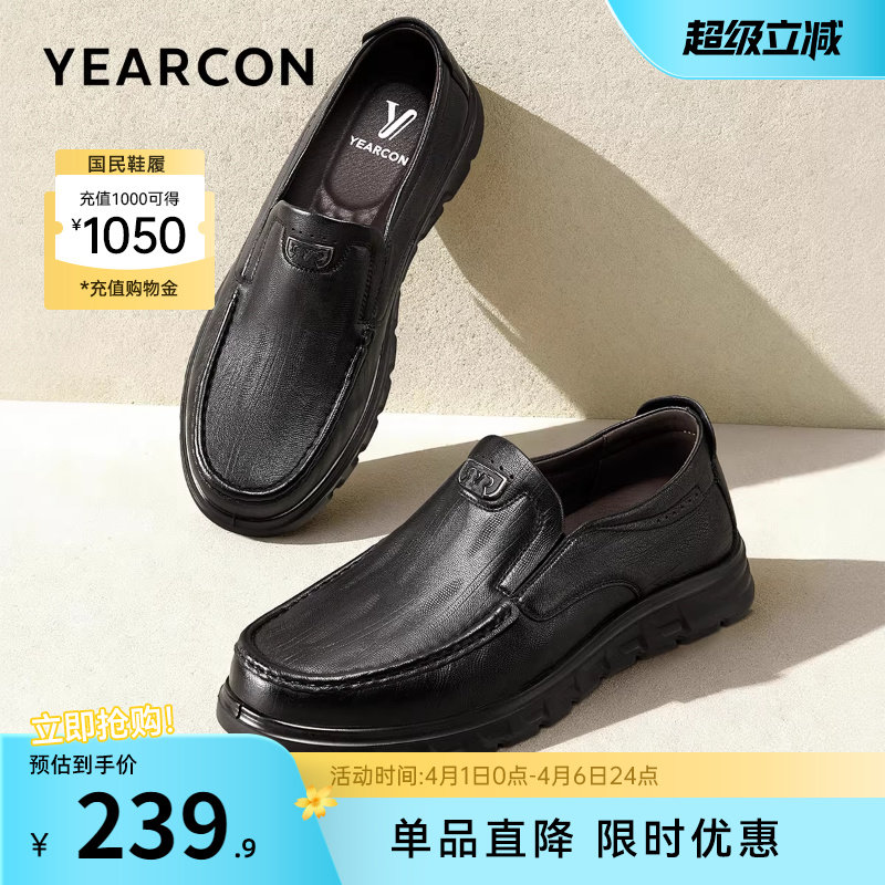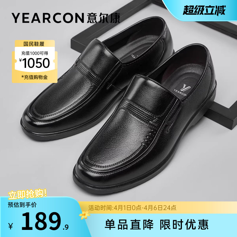 意尔康男鞋2026新款春季休闲皮鞋男士商务软底一脚蹬中年爸爸鞋