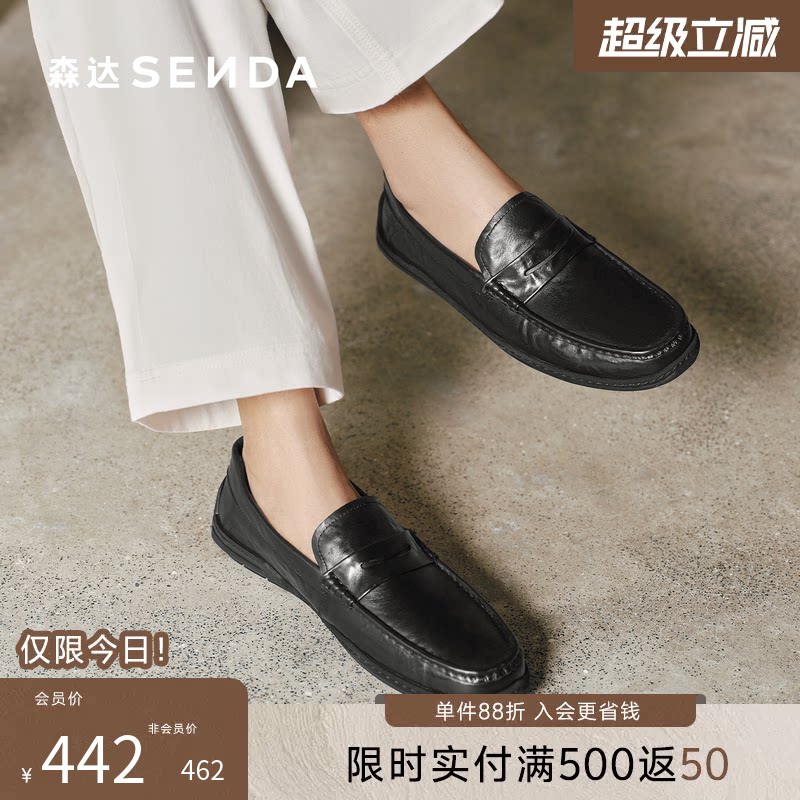 森达乐福鞋老钱风男商场同款圆头休闲皮鞋一脚蹬豆豆羊皮鞋K1P02