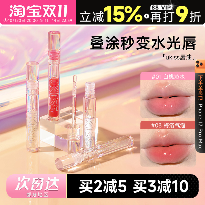 程十安的店ukiss唇釉水光唇蜜唇彩叠涂口红保湿滋润补水透明唇油