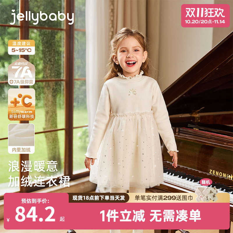 [抗菌锁温]女童连衣裙宝宝秋冬高领加绒蓬蓬网纱裙子女儿童公主裙