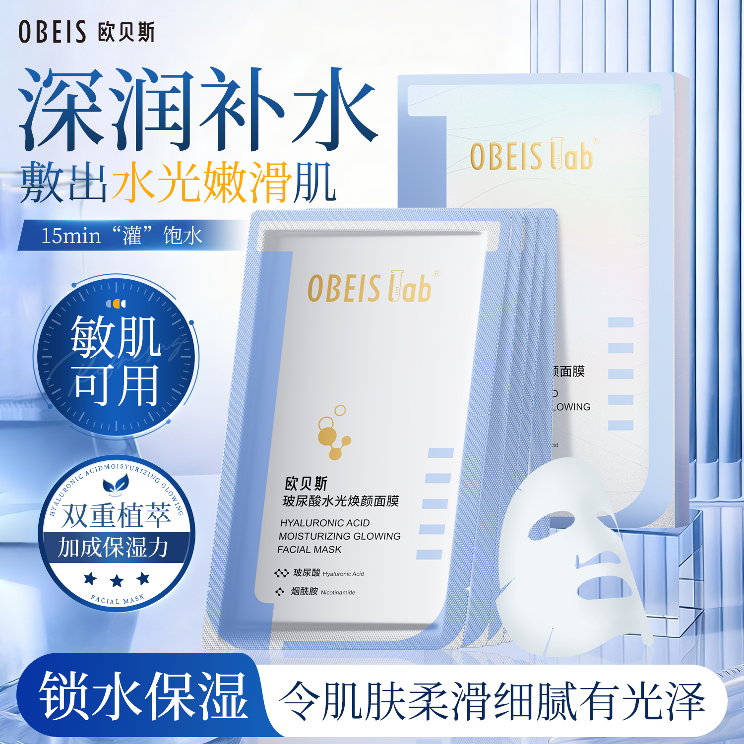 欧贝斯玻尿酸水光焕颜面膜积雪草补水保湿滋润烟酰胺面膜提亮肤色