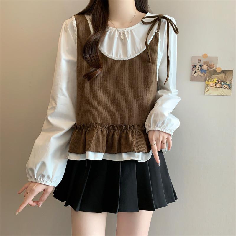 森女部落原创甜美蕾丝宽松娃娃领长袖衬衫上衣内搭叠穿女装冬新款
