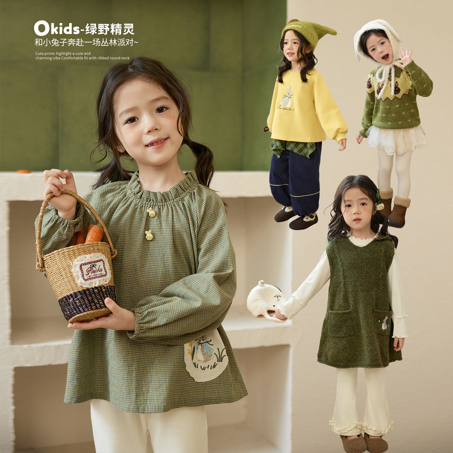 NORNOR童装女童套装森系2025秋冬新款网红时髦儿童娃娃衫长袖上衣