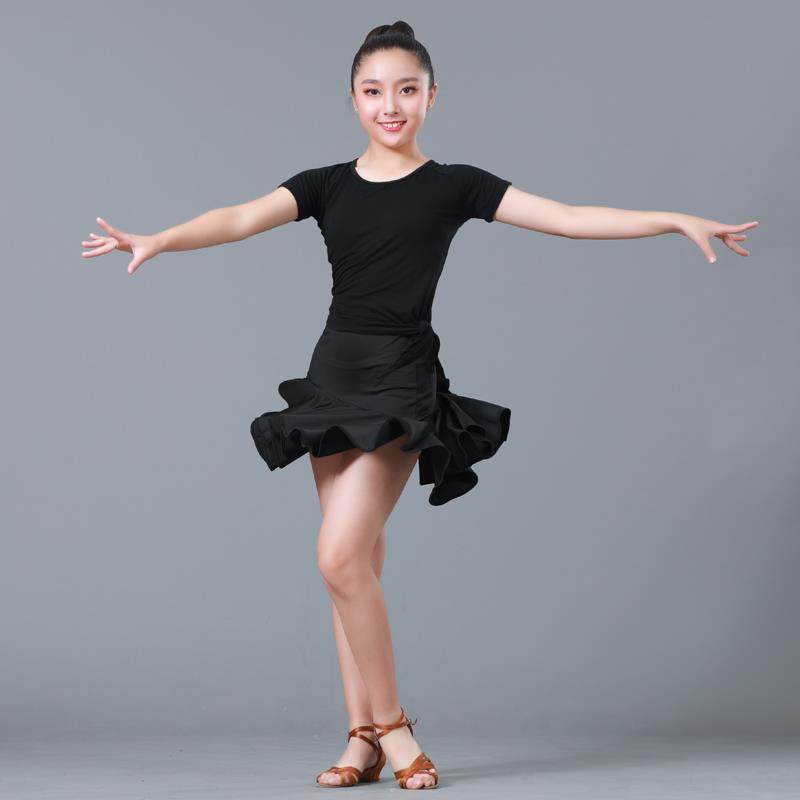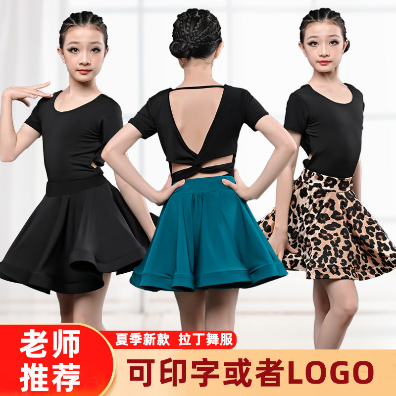 高档儿童拉丁服装短袖2024新女孩赛实践舞蹈艺术测舞服比装服装试