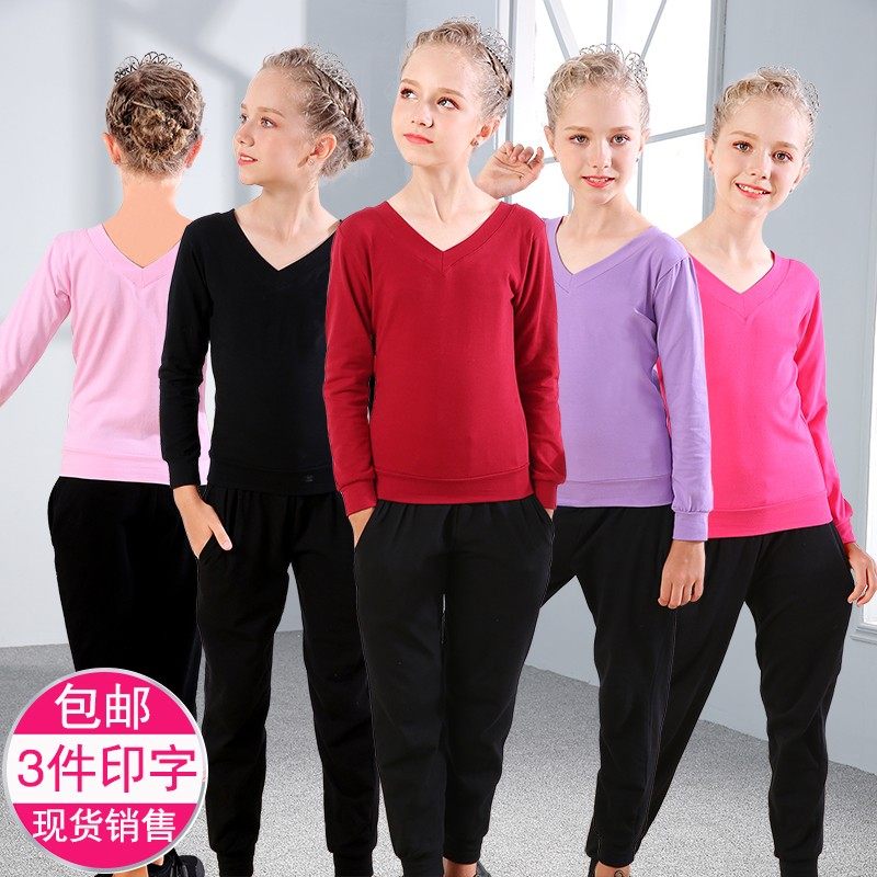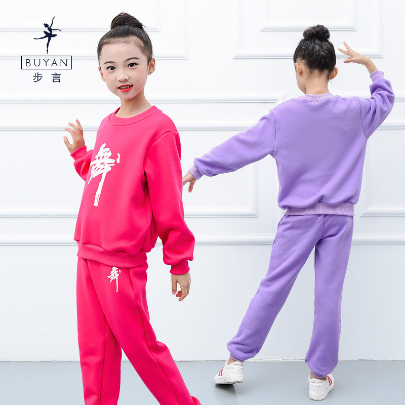 儿童舞蹈服女童练功服长袖女孩秋冬加绒加厚纯棉套装男童拉丁服装