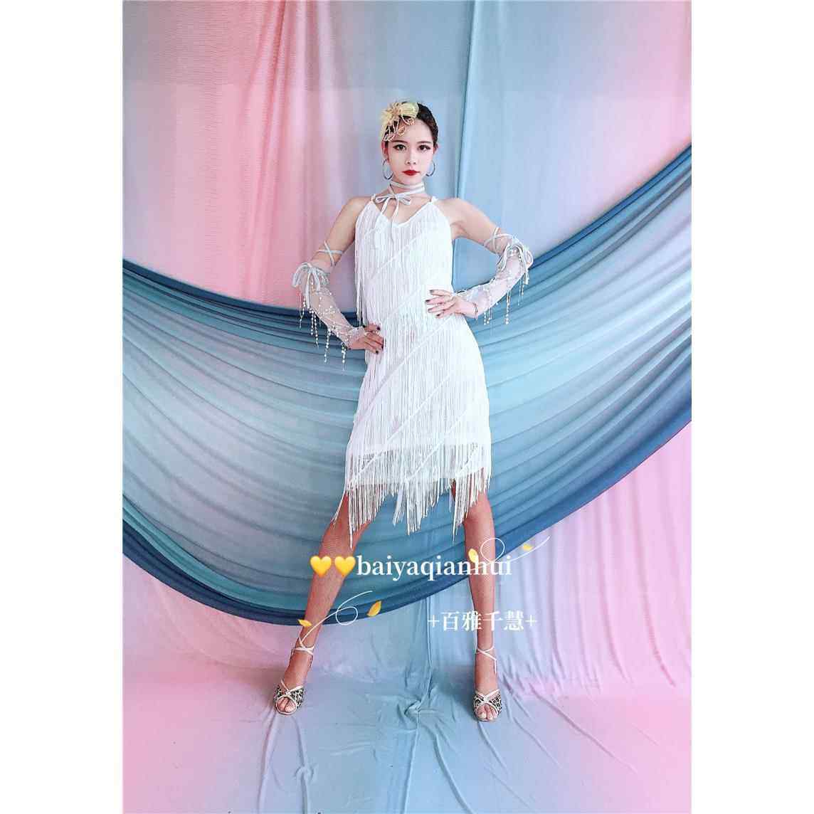 高档百雅千慧拉丁服装舞202新款比赛舞舞蹈服春亮片拉丁裙流4苏演
