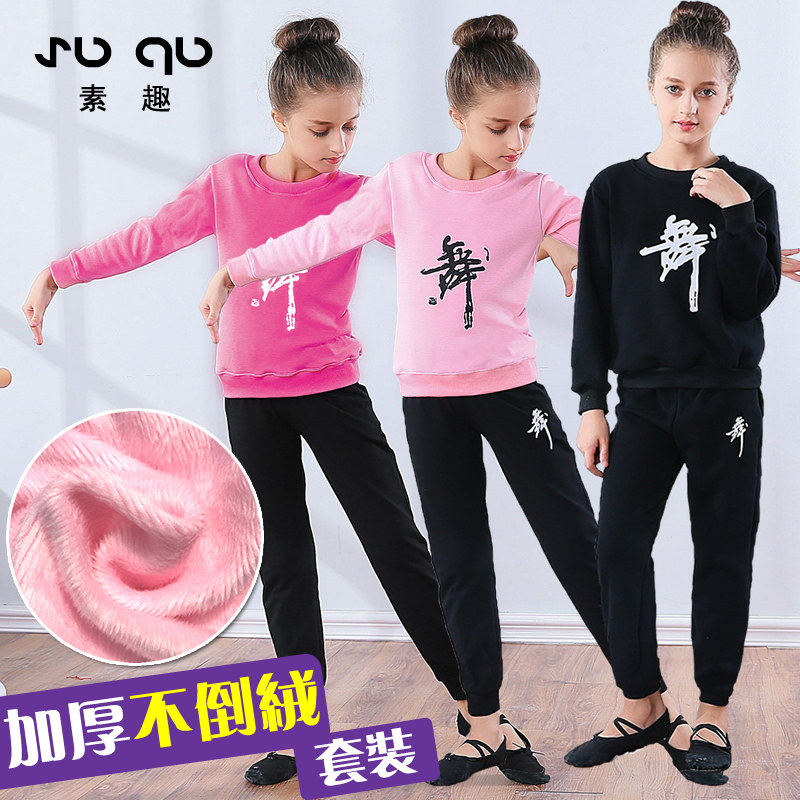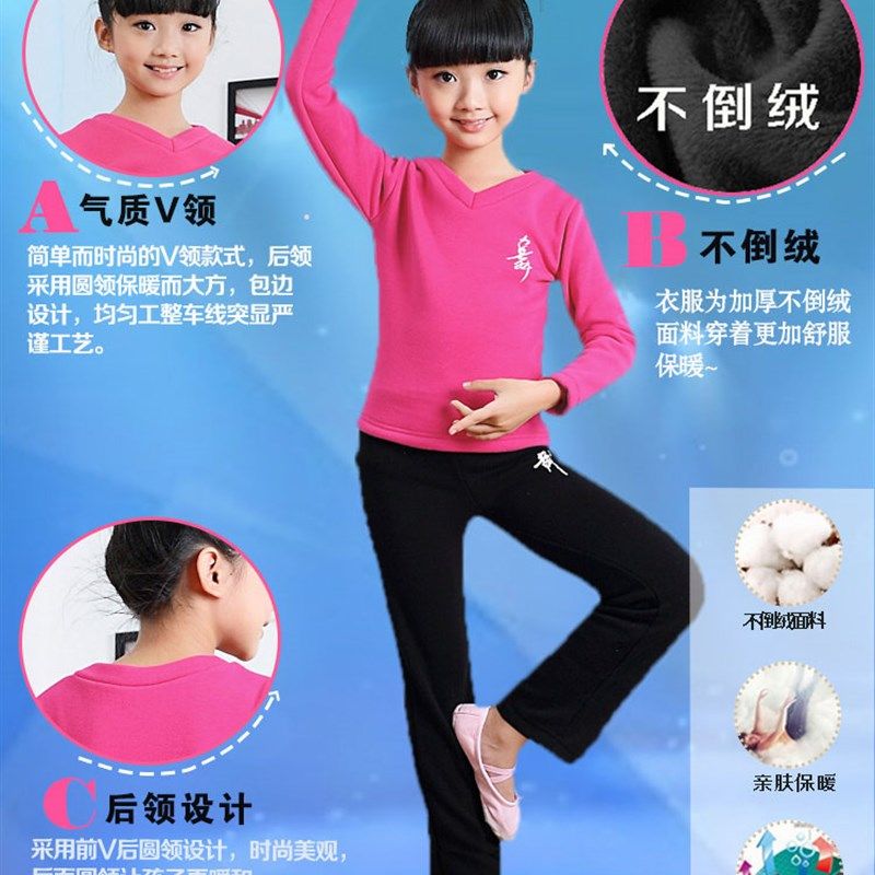 优选儿童舞蹈服女童练q功服长袖女孩加绒加厚套装男童拉丁服装秋