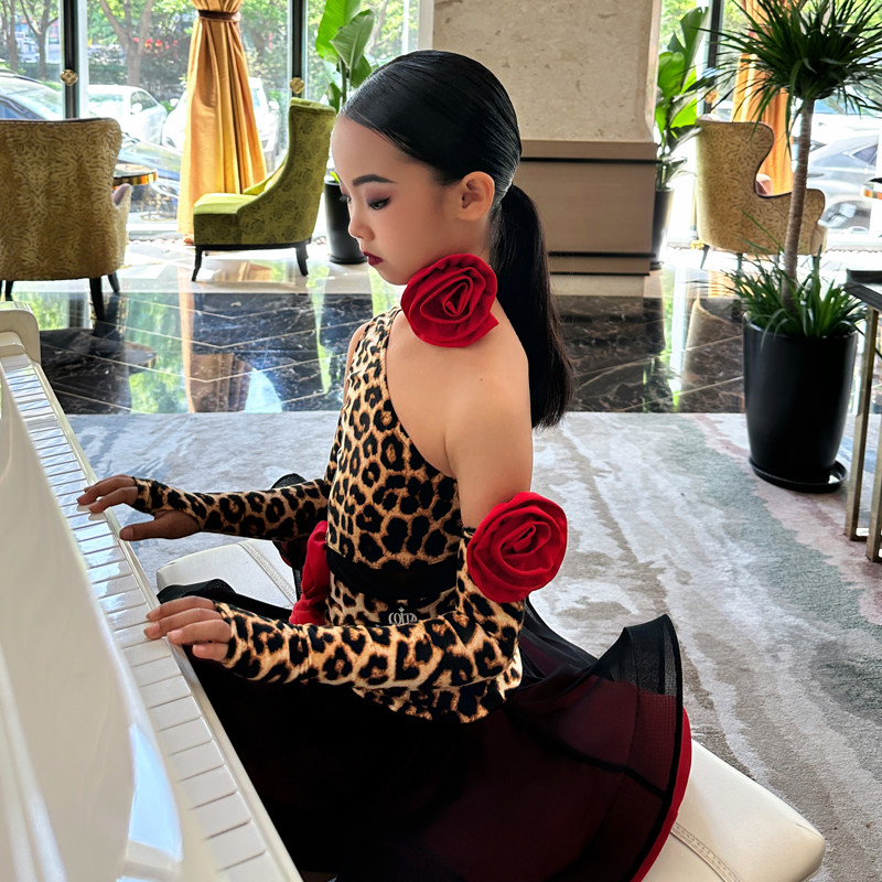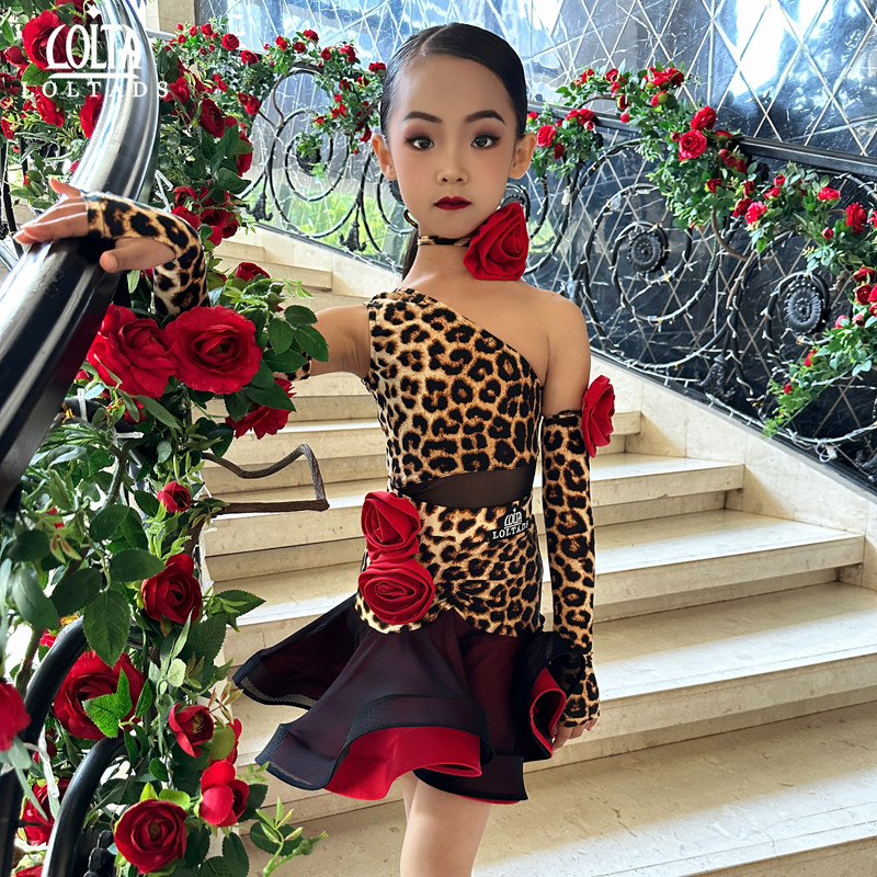 洛利塔新款豹纹拉丁舞演出套装舞蹈裙女童表演服儿童专业拉丁服装