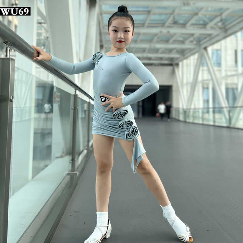 W69高级拉丁舞练功服女儿童专业舞蹈集训表演服幼儿拉丁服装长袖