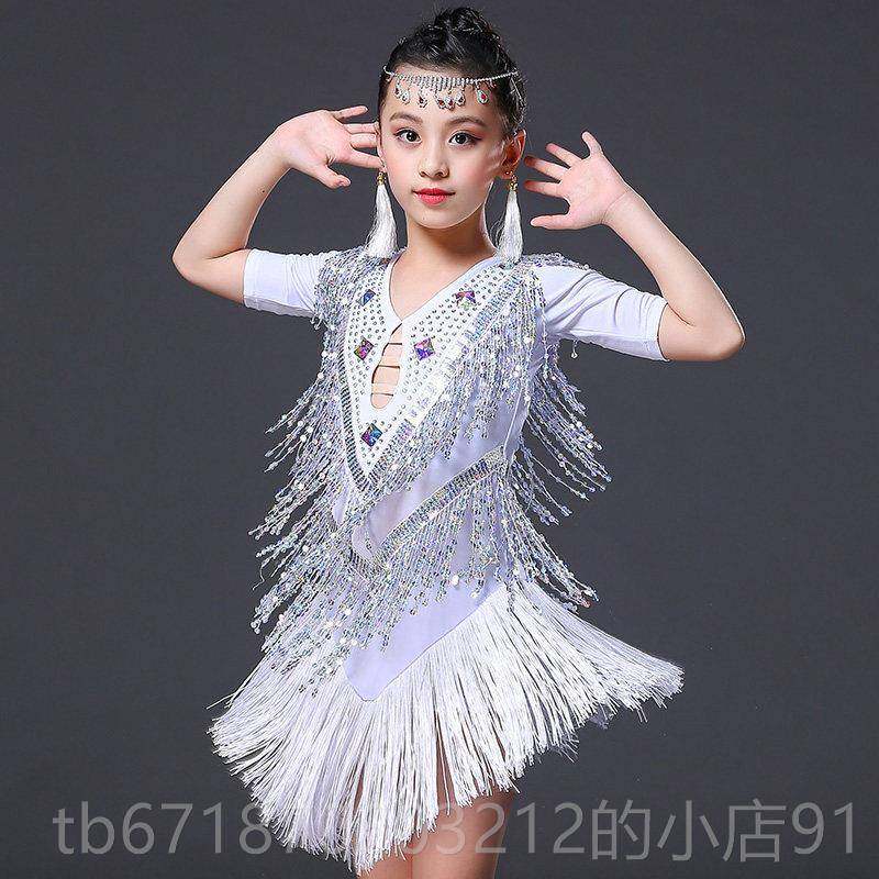 拉丁服装儿童女演出比赛服流苏少儿拉丁舞服装练功夏女孩拉丁舞裙