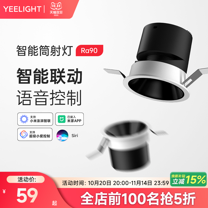 yeelight易来智能筒灯嵌入式家用客厅防眩LED射灯天花板灯T2