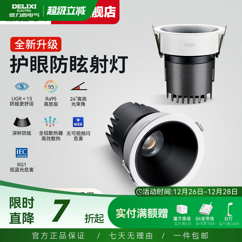 德力西LED射灯嵌入式深杯防眩高显COB射灯客厅过道天花灯护眼筒灯