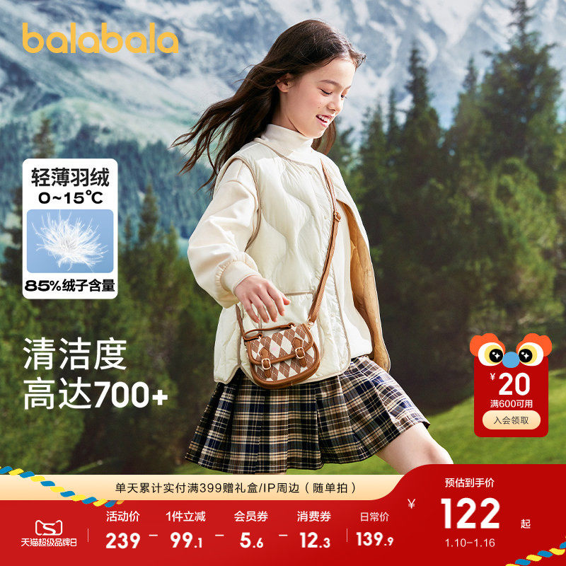 巴拉巴拉童装儿童羽绒马甲秋冬装2025男童女童轻薄休闲背心中大童