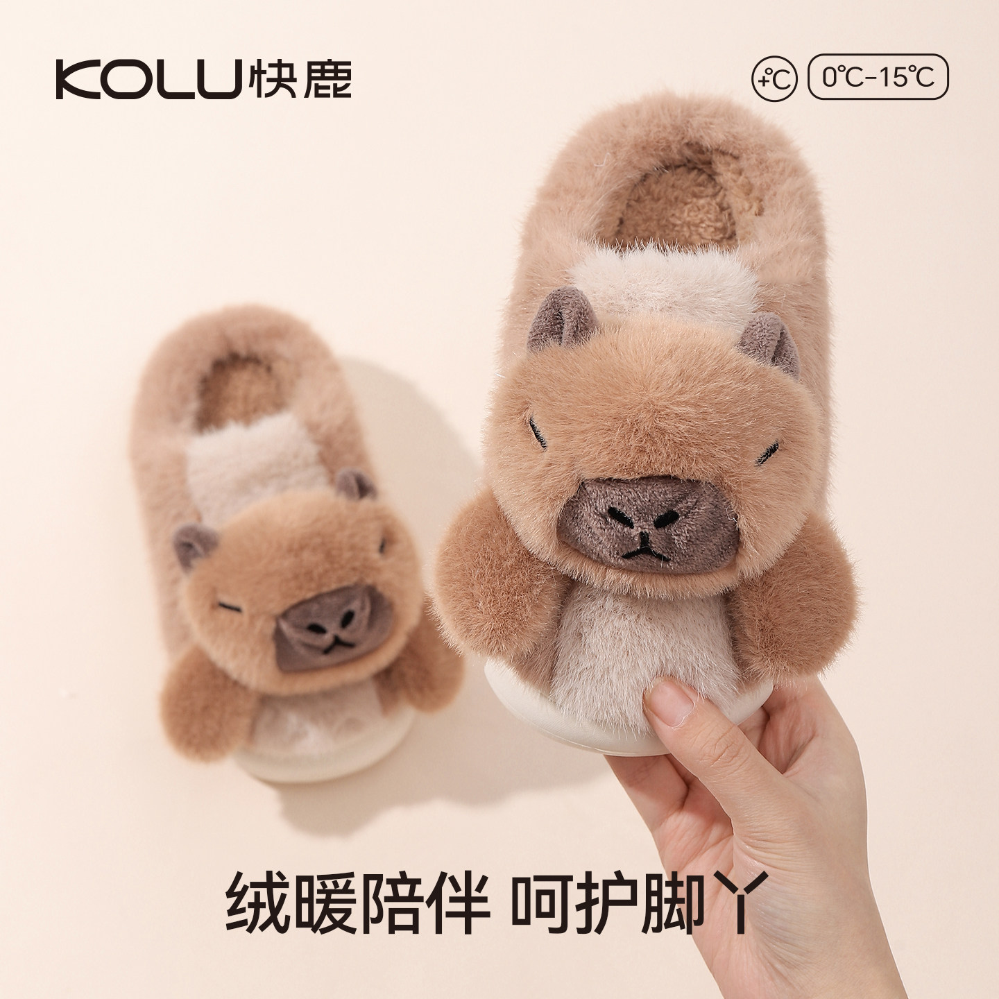 可爱小水豚噜噜棉拖鞋女冬季居家室内防滑保暖毛毛绒卡通拖鞋女款