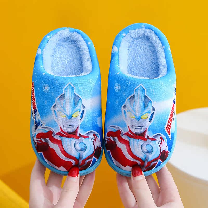 奥特曼儿童棉拖鞋冬季居家室内防滑保暖棉拖男孩毛绒宝宝卡通拖鞋
