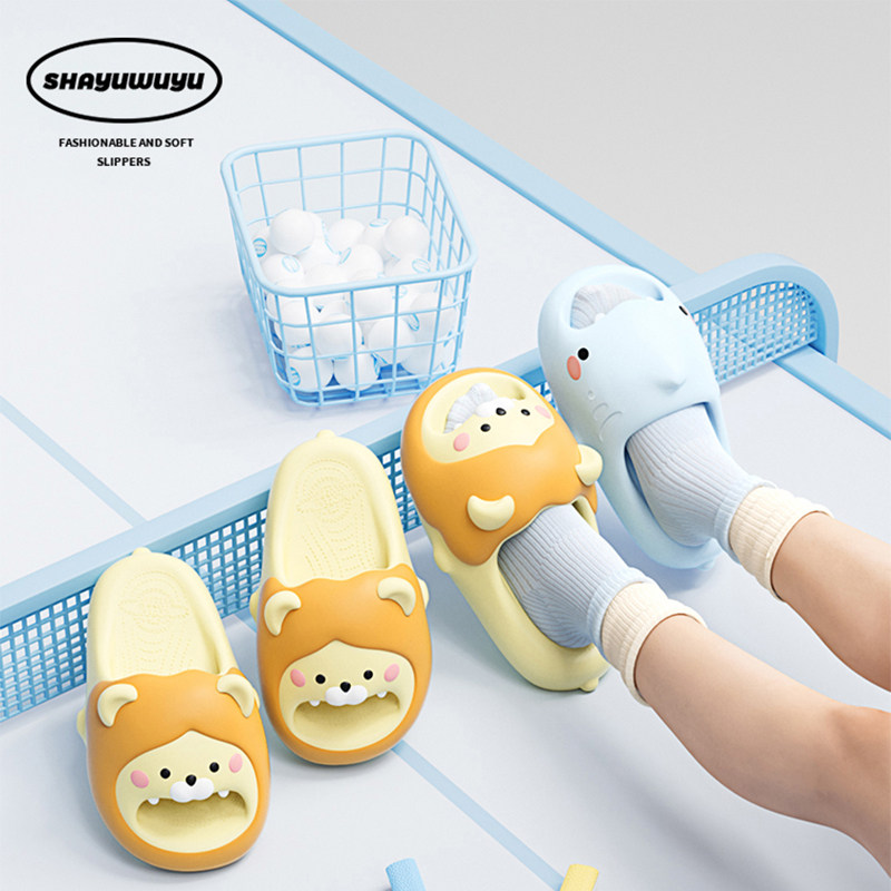 chikoku左狮右鲨可爱卡通拖鞋女夏季居家厚底静音情侣居家凉拖男