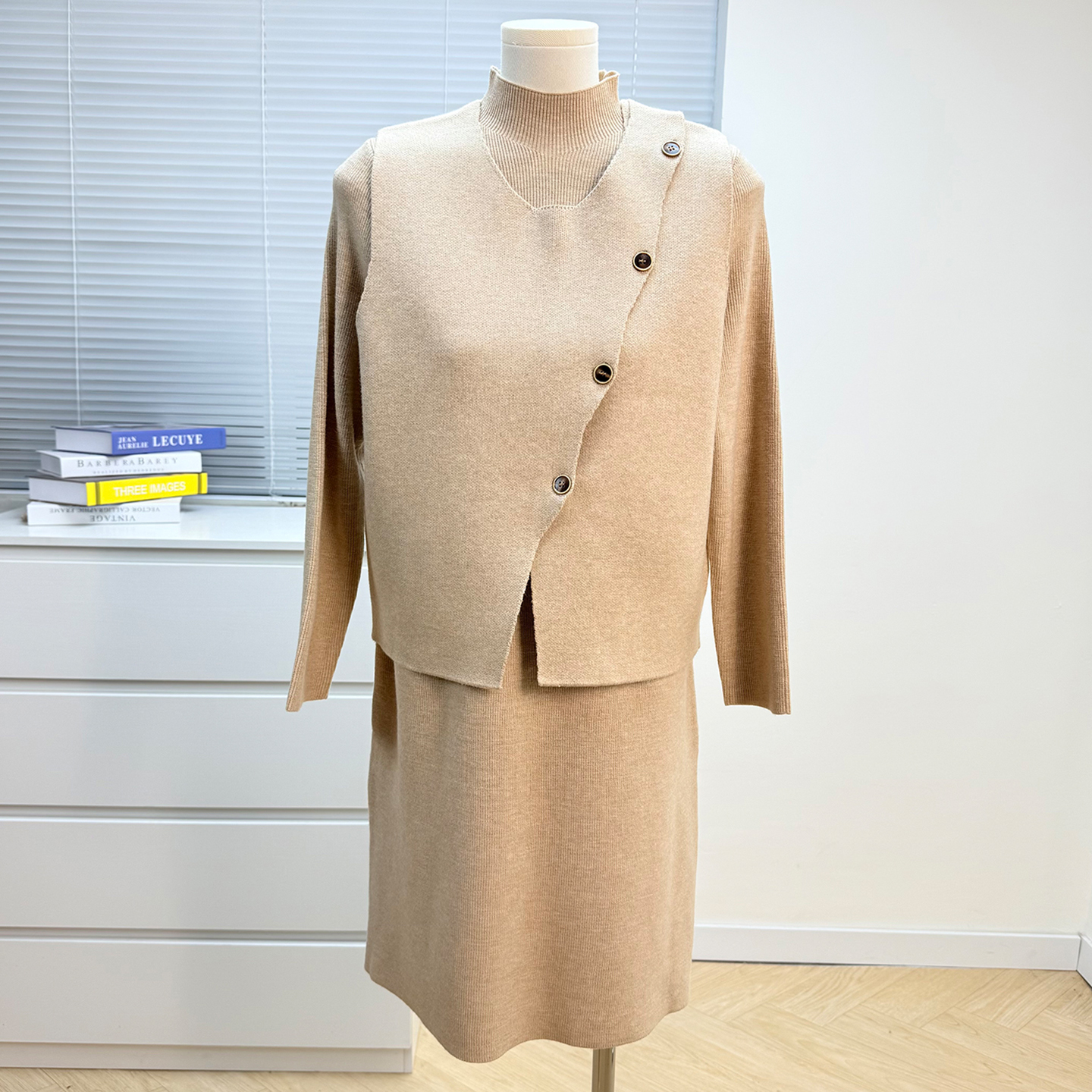 中长款毛衣裙女秋冬款妈妈装衣服两件套中老年女装马甲针织连衣裙