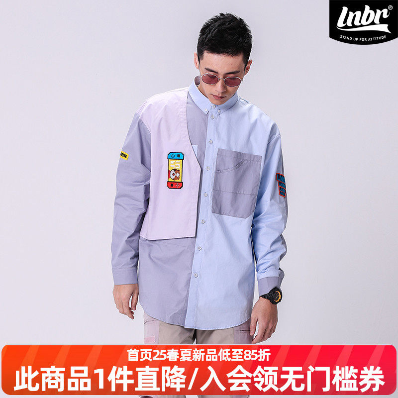 LNBR熊电潮牌衬衫男原创拼色衬衣男大码加大oversize休闲衬衫