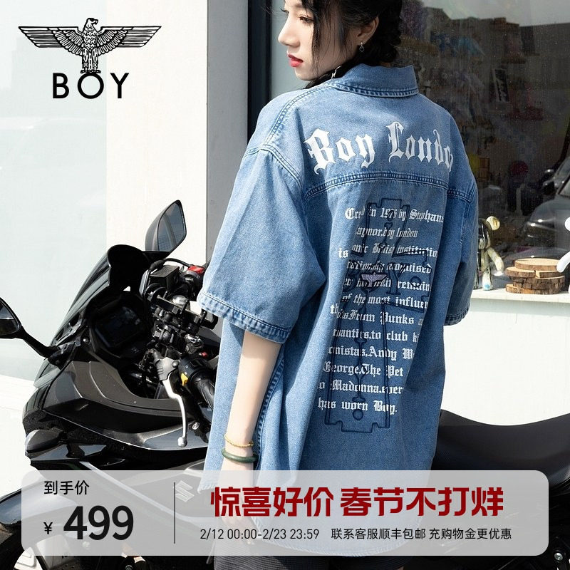 BOYLONDON潮牌衬衫男女同款夏春通勤牛仔短袖外套N49702