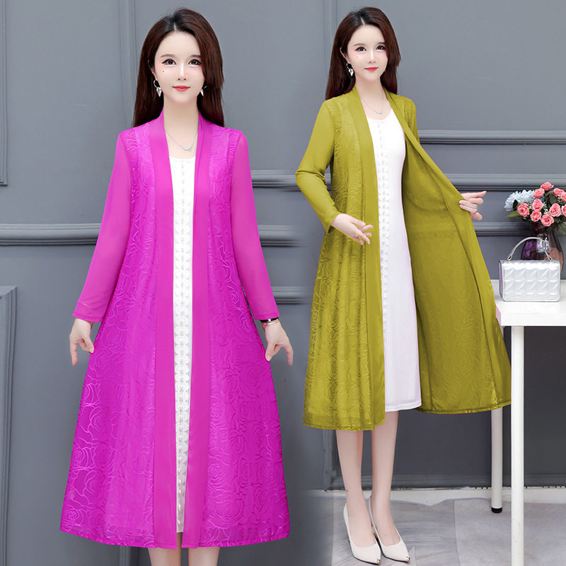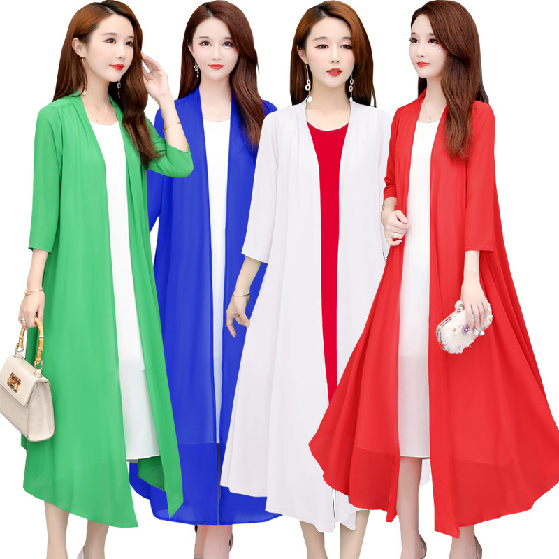雪纺防晒衣女中长款外搭开衫夏季薄款配裙子披肩外套中年外披纱衣