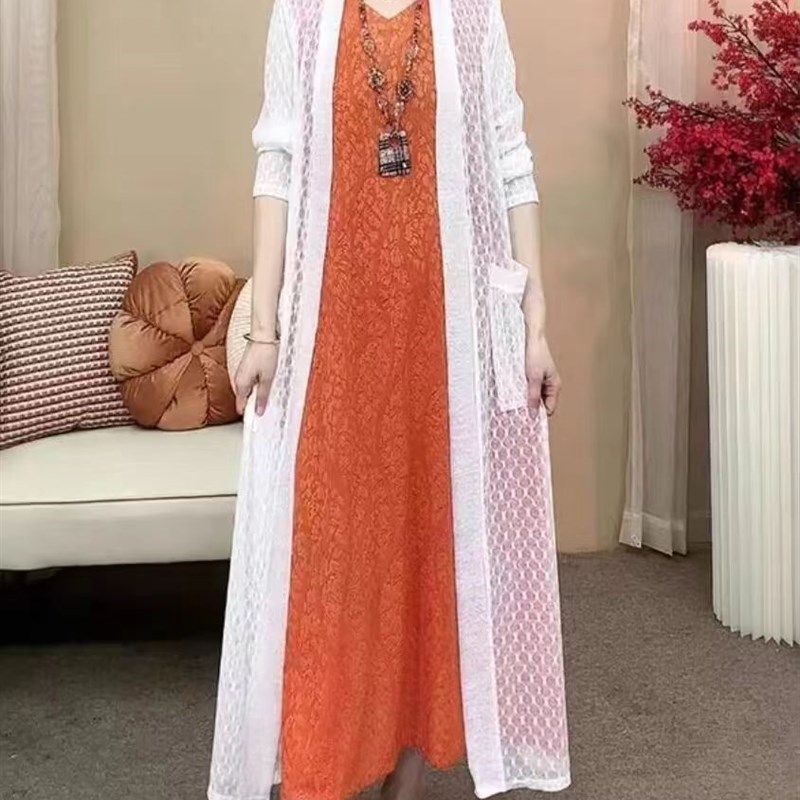 冰丝防晒开衫女夏季薄款网纱披肩外套配裙子大码妈妈长款旗袍外搭