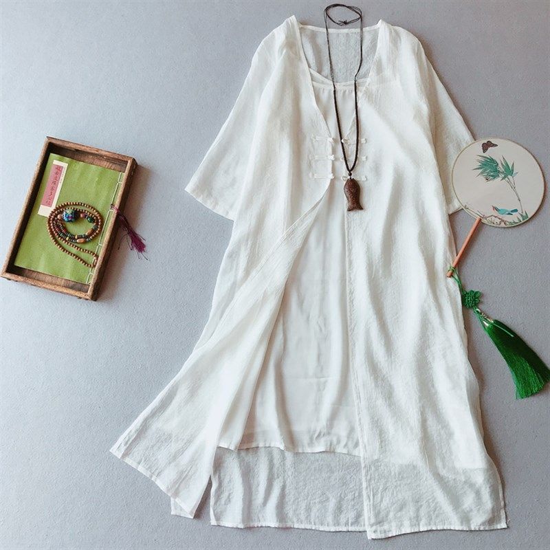 超薄麻纱中长款开衫七分袖复古中国风盘扣外搭防晒衣女夏披风外套