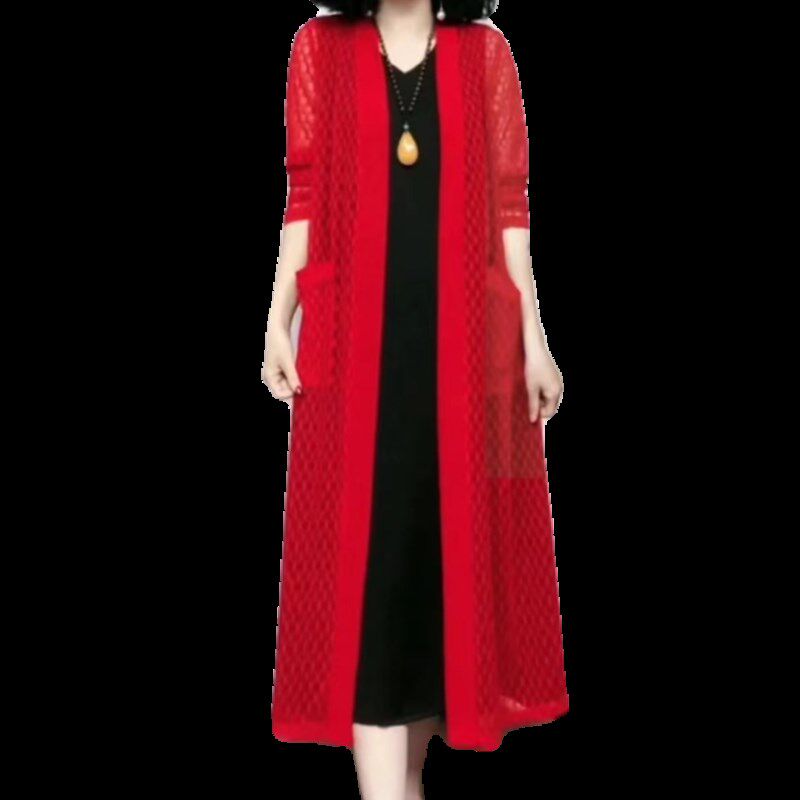 新款夏季时尚防晒衣长袖开衫长款过膝镂空网纱披肩外套风衣外披女