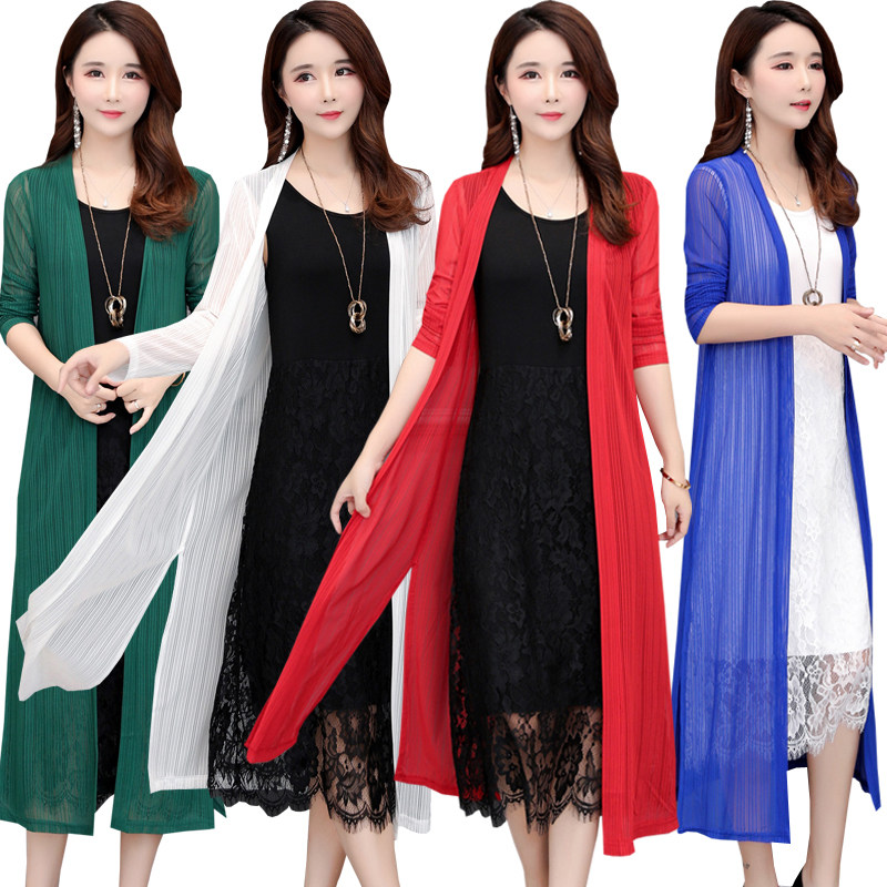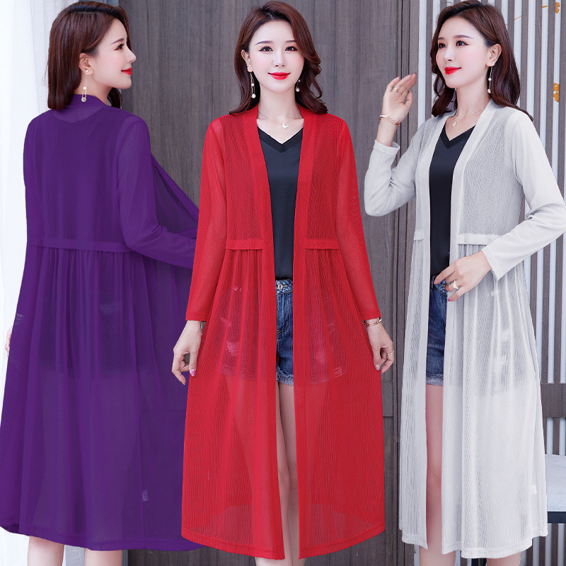 薄款冰丝开衫女中长款空调衫长袖外搭披肩外套夏季防晒衣网纱上衣