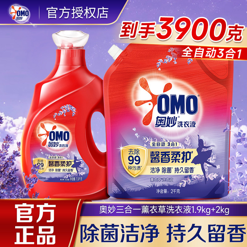 奥妙三合一薰衣草洗衣液洁净家庭装家用实惠装持久留香官方正品店