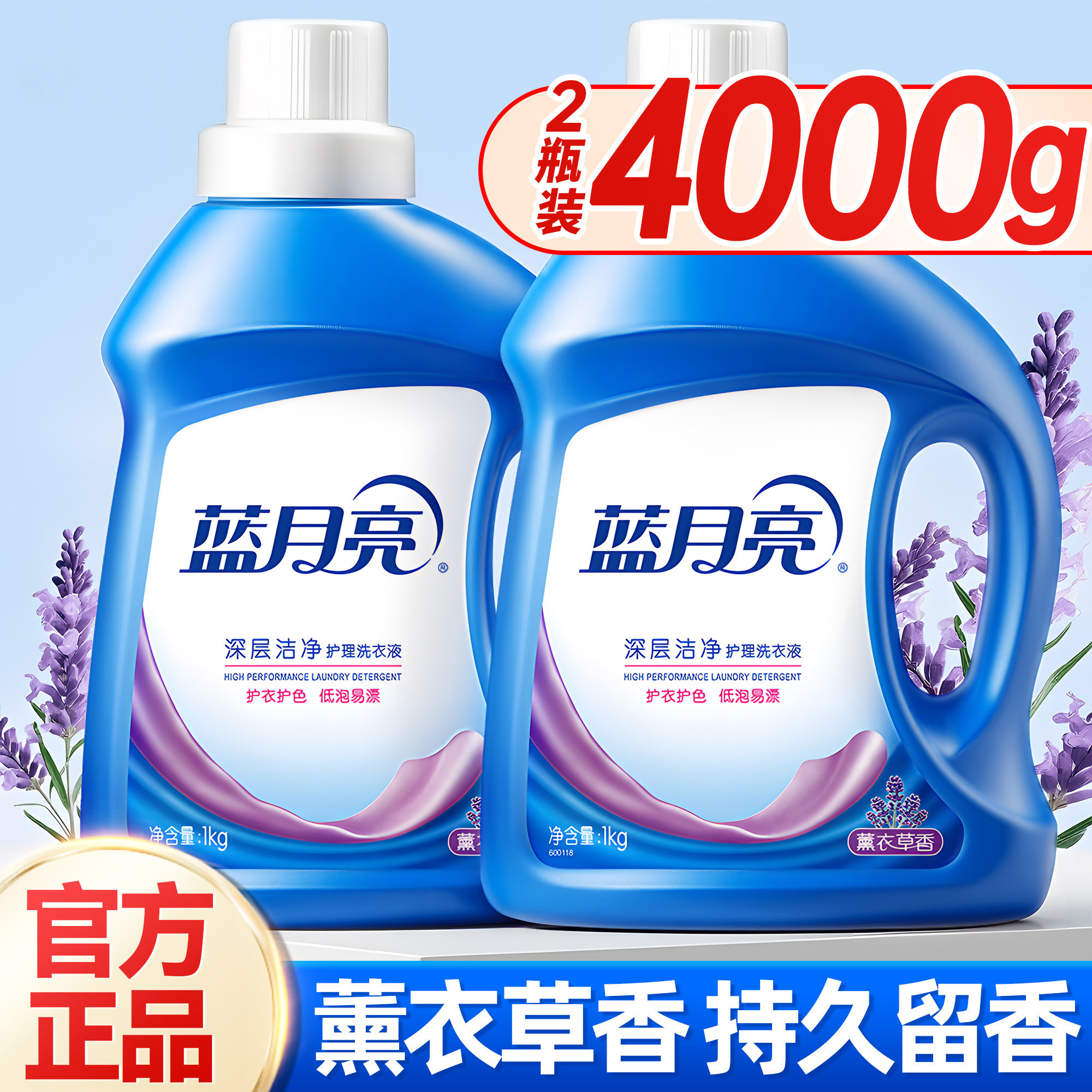 蓝月亮洗衣液去渍持久留香家庭用清洁正品薰衣草1kg*2瓶持久留香