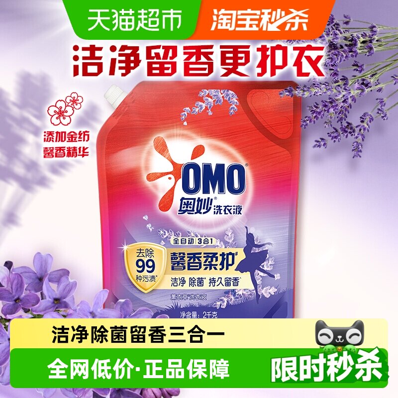 奥妙全自动薰衣草洗衣液袋装酵素2KG*1袋长效抑菌祛渍护形不皱褶
