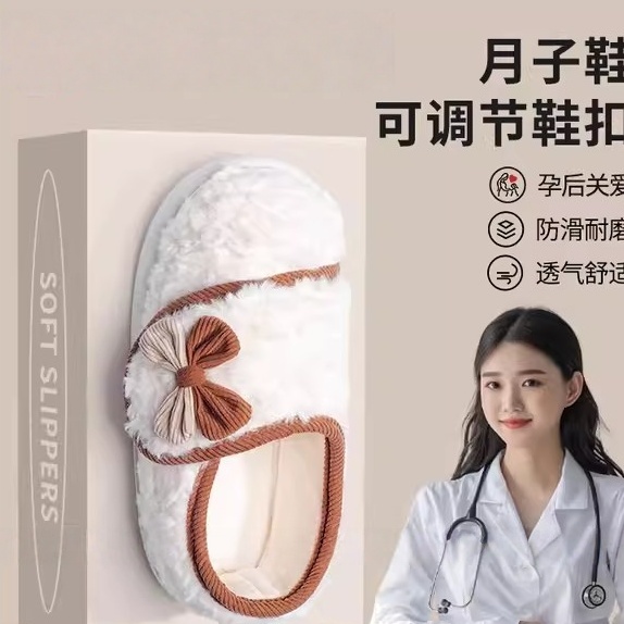 德国孕妇坐月子鞋九月软底防滑防臭冬季棉质拖鞋2025新款产后女性