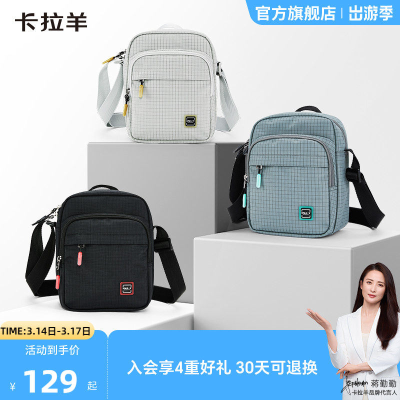 卡拉羊斜挎包男包单肩包女休闲包户外背包大容量旅游包斜挎小方包